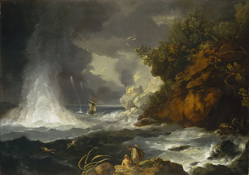 Màgini: William Hodges, Mirada de capu Stephens in su strintu de Cook cun trumba de mari, 1776. de Didatticarte.