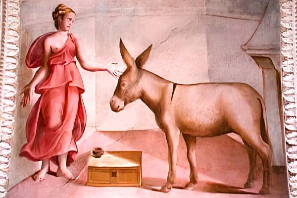 Màgini: Su segundu cuadru pigau de s’arromantzu de Apuleju “Metamorphoseon Libri XI” e pintau a friscu in sa “Sala de su burricu de oru” de sa Rocca dei Rossi in San Secondo (Parma). Càstia puru: Sa sala de Apuleju in sa Rocca di San Secondo. Agiudau de sa serbidora Fòtidi, fancedda sua, Lùciu circat de…