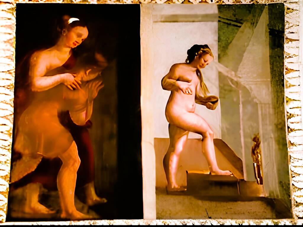 Is sposus Arnolfini de Jan Van Eyck. Unu sprigu mannu convessu, in palas de issus, reflessat su logu de su totu e s’amostat…
